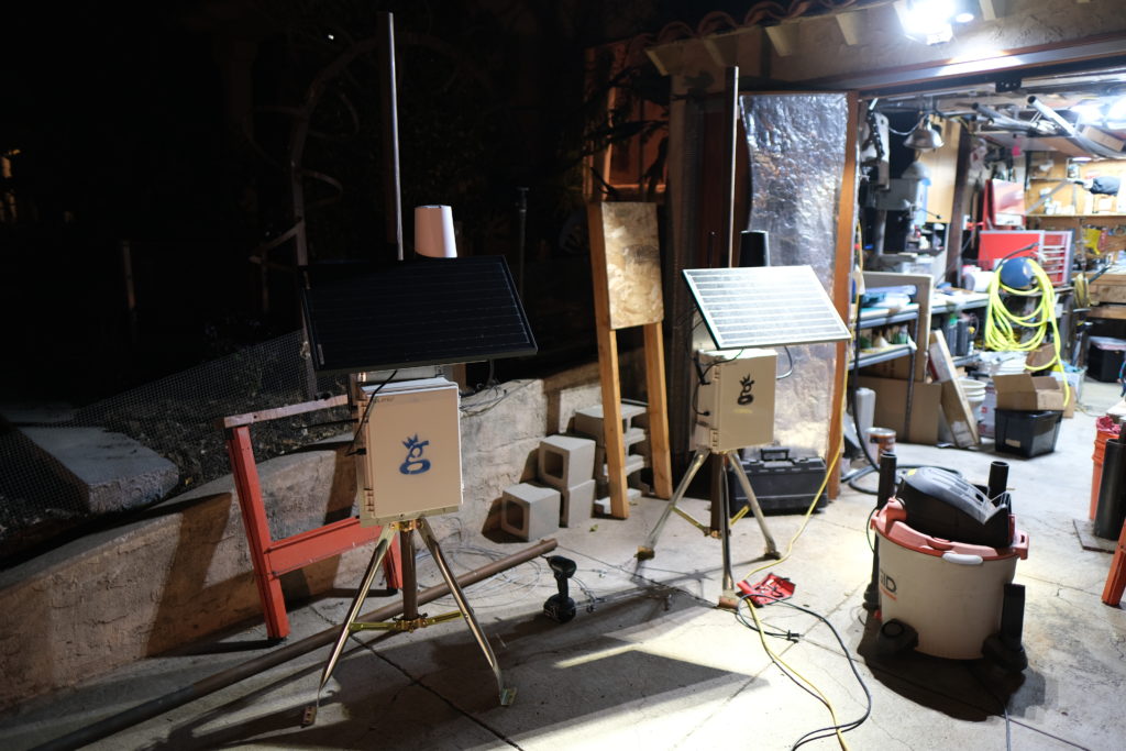 It started with the usual last minute scramble to get everything ready for a big project. The night before I was out in the shop cutting masts and prepping enclosures to make sure I had everything ready for a big week! During the past year, I've learned a bunch about getting these things out in the wild. The latest improvement I learned from a client (thanks Dave H!) was using these little tripods for a "plant it anywhere" setup that's easy to carry.