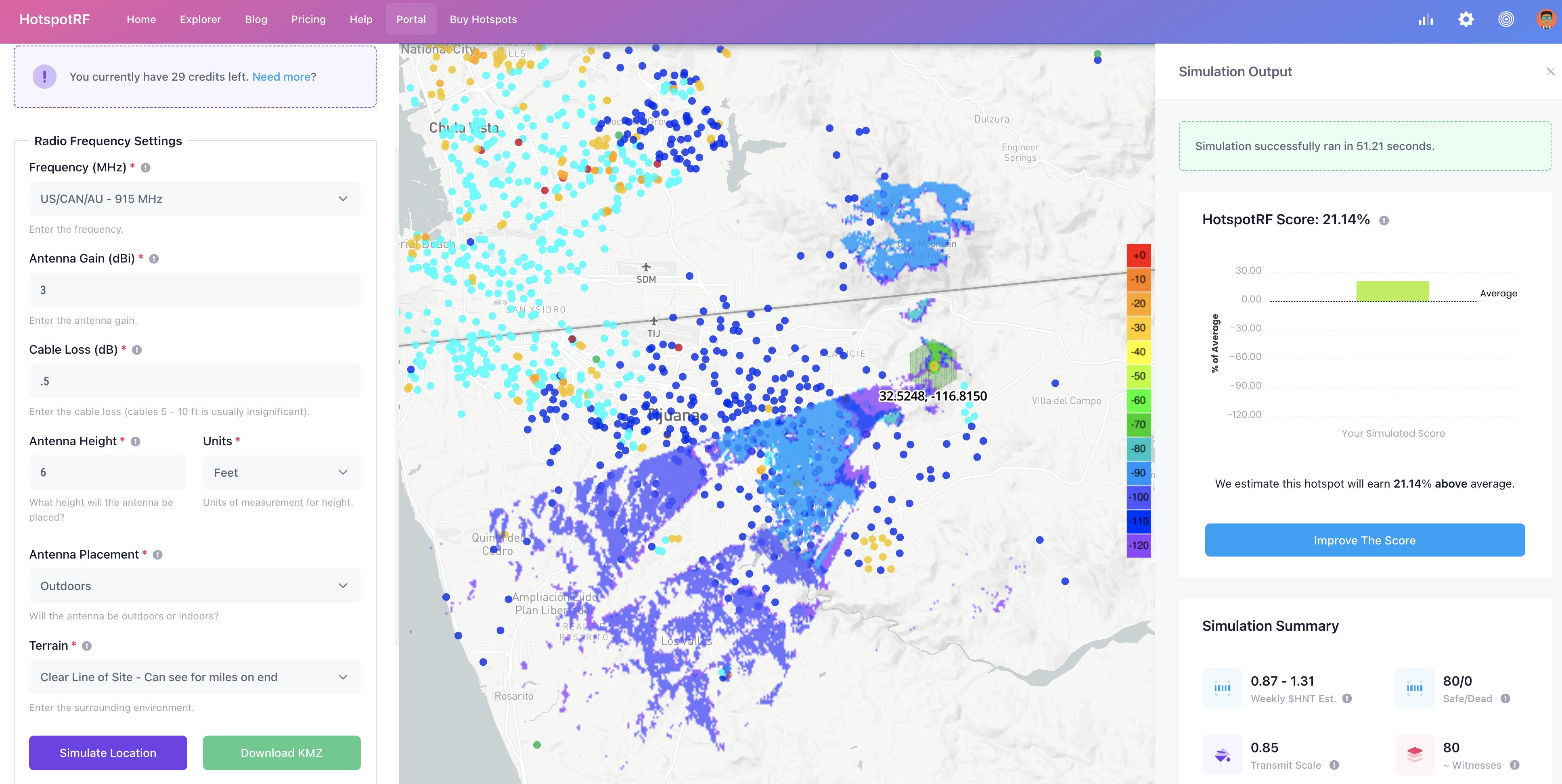 After running the sim, HotspotRF predicts that this will earn 21% above local average, woohoo!