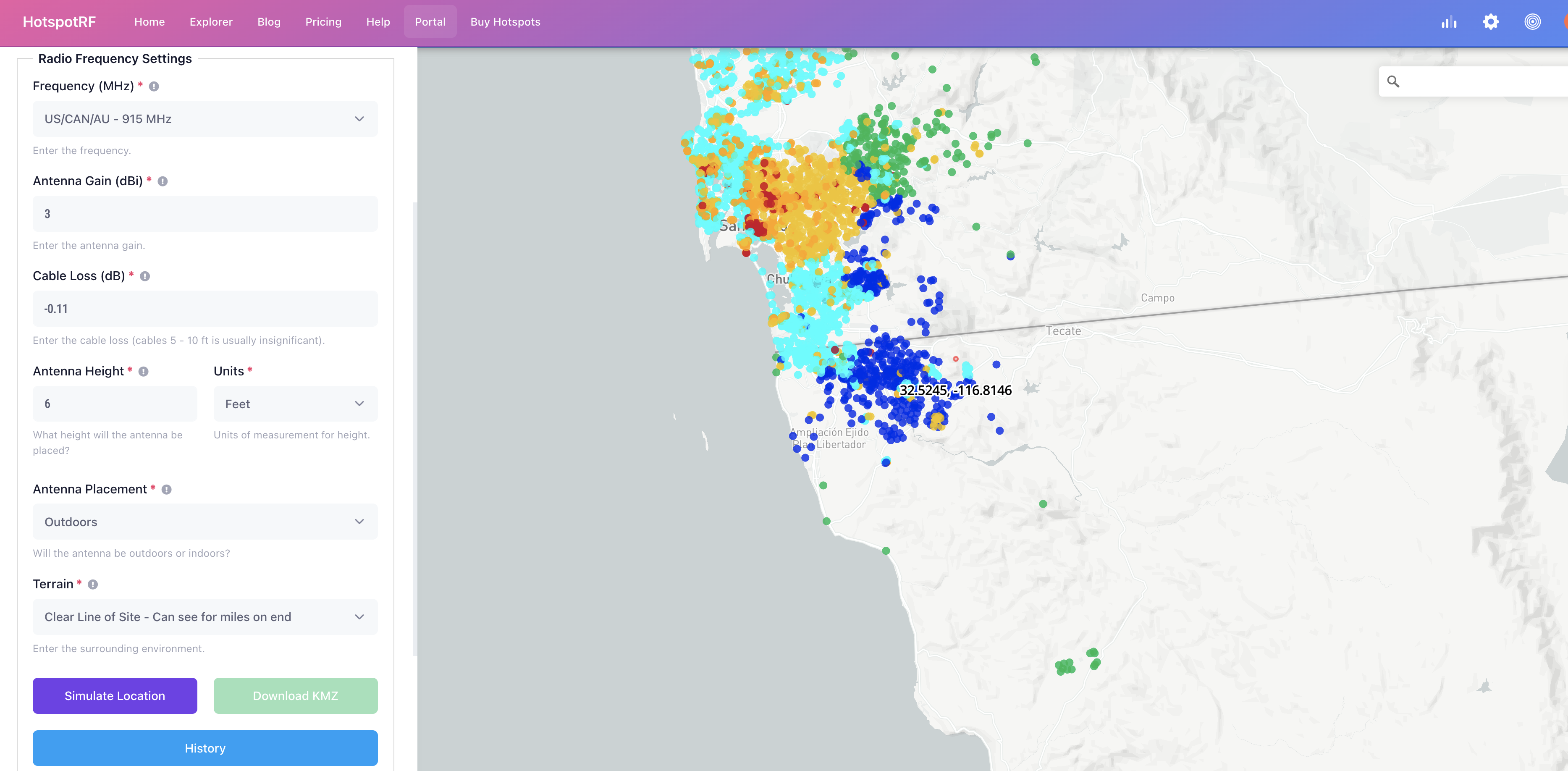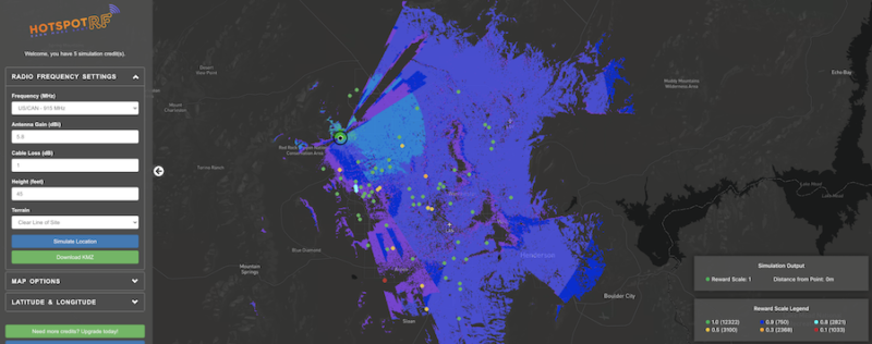 One of the best ways to see if your location *might* work is to run an RF simulation to see how far those little LoRa packets will fly. You plug in some details, like your specific frequency (915 for us North American types), antenna gain, cable loss, height of antenna, and type of terrain, and HotspotRF will spit out an image of what your radio coverage should look like.