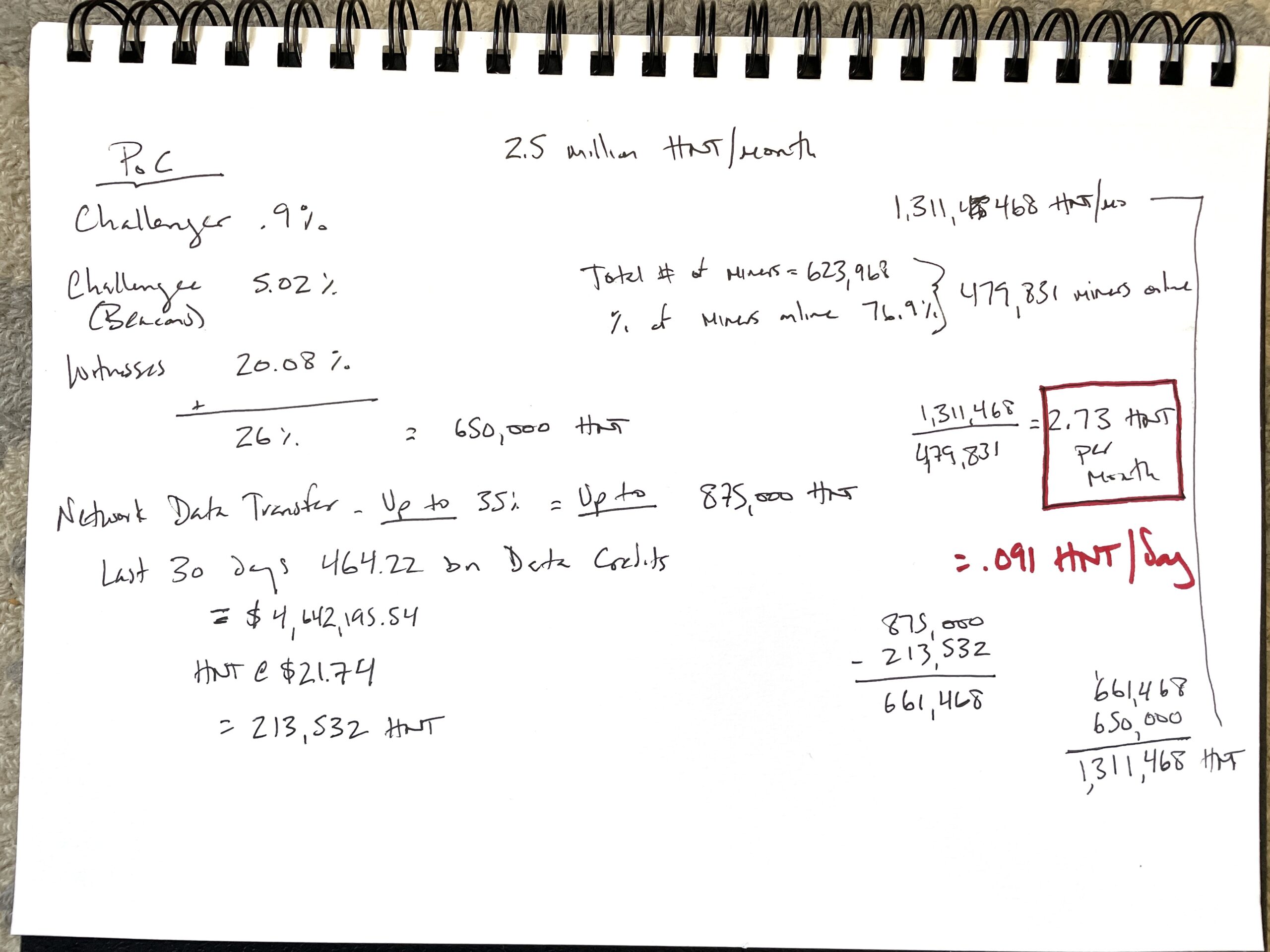 Starting at the top, the global daily average for a Helium Hotspot that's online is .091 HNT/day. How did I get that? Math.