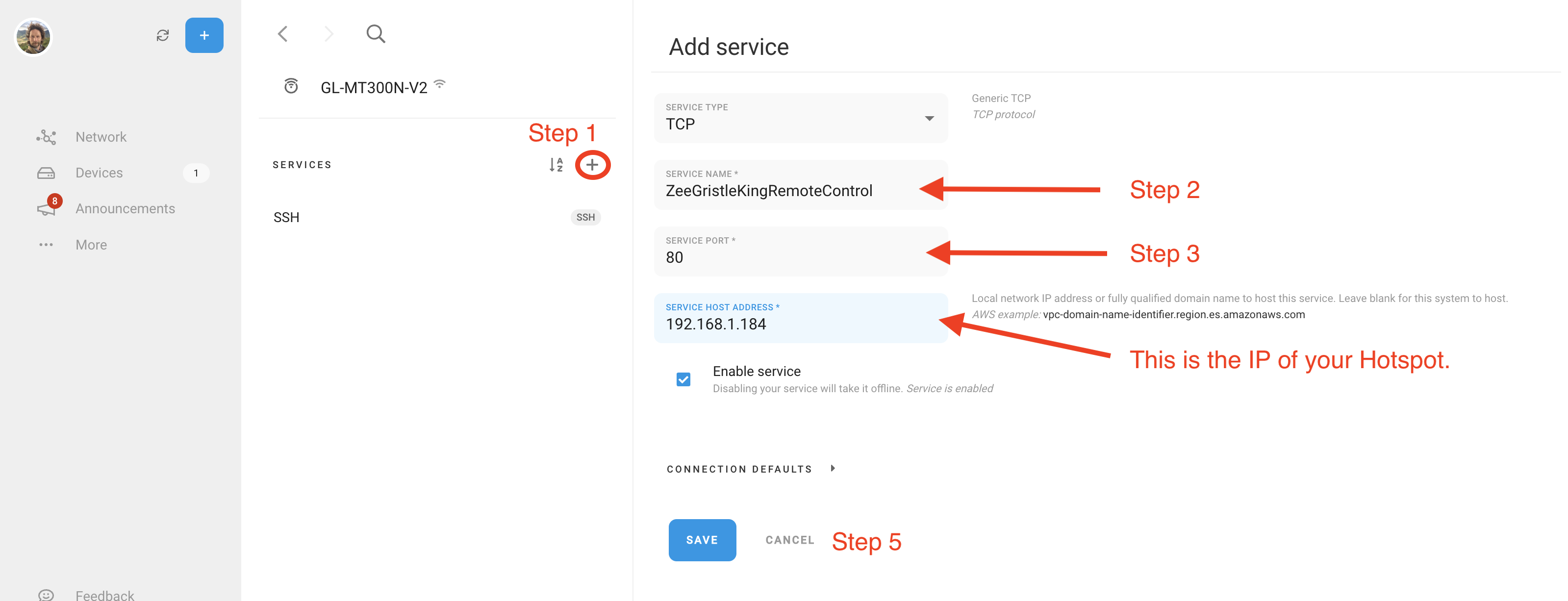 Hi Nik, Couple of comments after using this guide: 1. Also works well with the GLX750 wireless router with integrated SIM card. Avoids buying the additional mango if you already have a GLX750 for an off grid installation. 2. I think for step setting up the services the HTTP selection is needed not TCP. At least for me TCP did not work but HTTP did. Thanks for all you do! Cheers