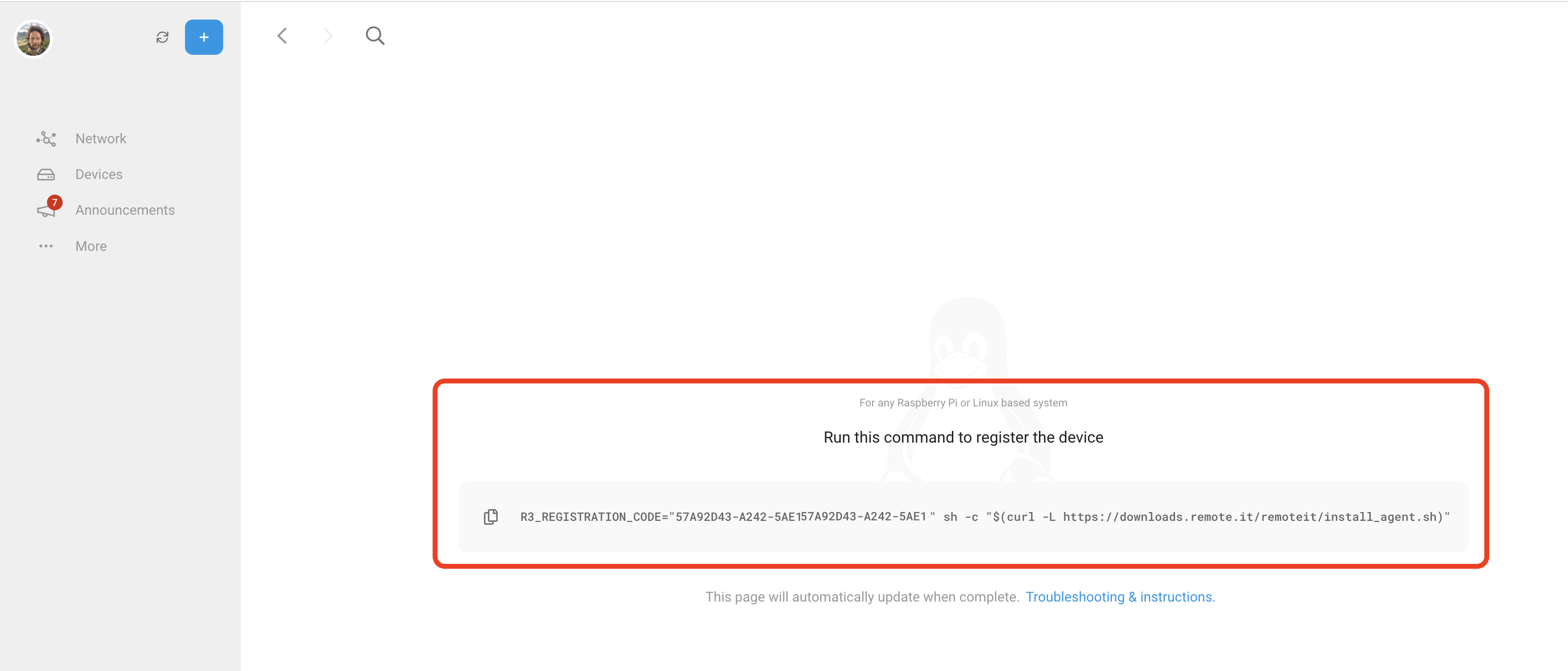 On Remote.it, you're going to generate a "command line install command". This sounds scary, but if you can click your mouse and follow directions you'll be fine. :)