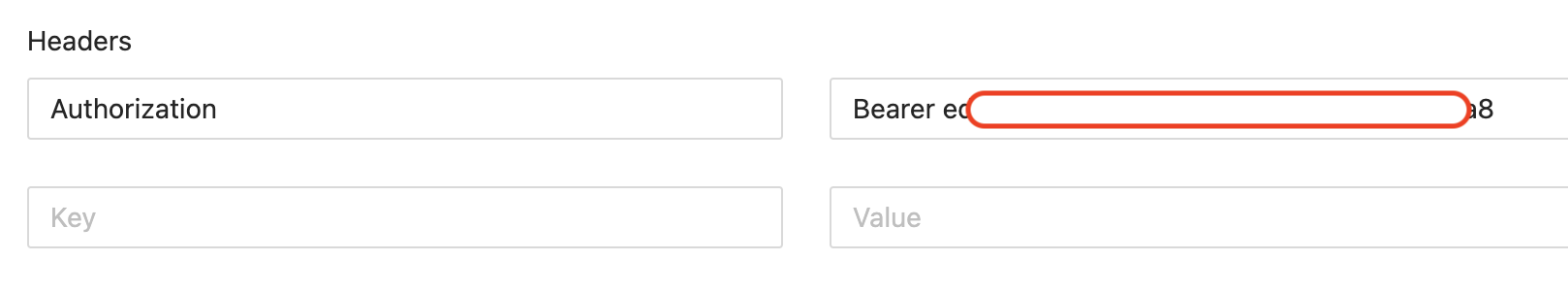 Now hit the "Add Header" button, and add in a Header with a "key" of Authorization and a "value" pasted in from your app. That will start with "Bearer" and then have your API key in there. I've already done mine, but just for reference, this is what it looks like: