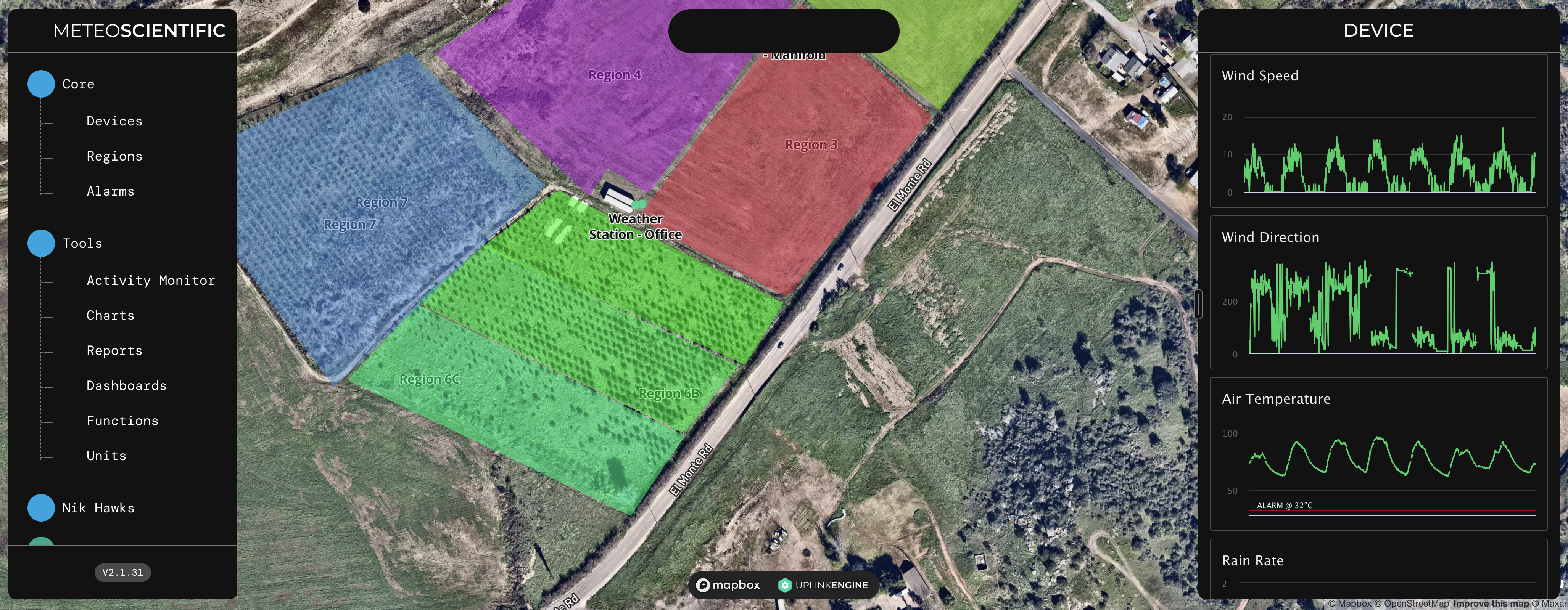 To see all that data, you need an Integration. In this case, we'll be using the MeteoScientific integration, which also has a Rules Engine that allows you to create rules and workflows around what happens when it rains, or gets too cold, or does any one of a number of things that your sensors can report on. *Full disclosure: I own and run MeteoScientific and invested in the software it runs on, which is called UplinkEngine.