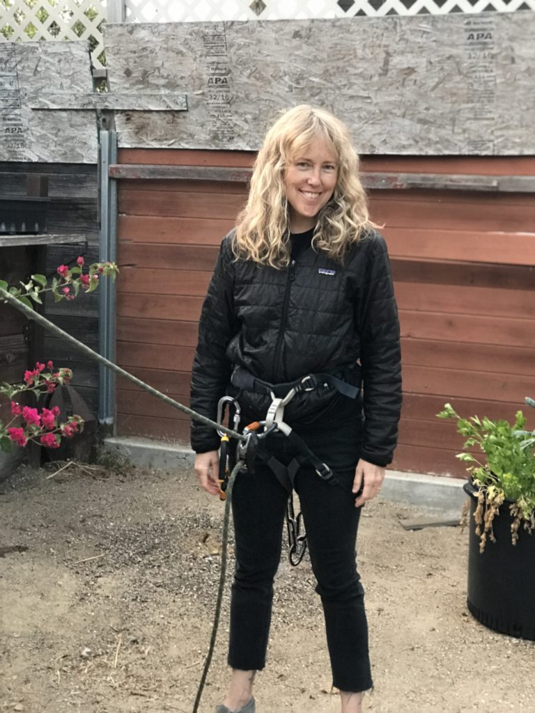 Of course, I had to constantly tinker with it (it was all new and exciting), and the pole was too much for me to manage safely by myself, so I hooked my wife Lee up to the pole with a climbing harness and rope, and she patiently belayed the pole as I tilted it up and down to dial in the hotspot and antenna at the top. She's seen my many phases of crazy, and she gamely went along with this one.