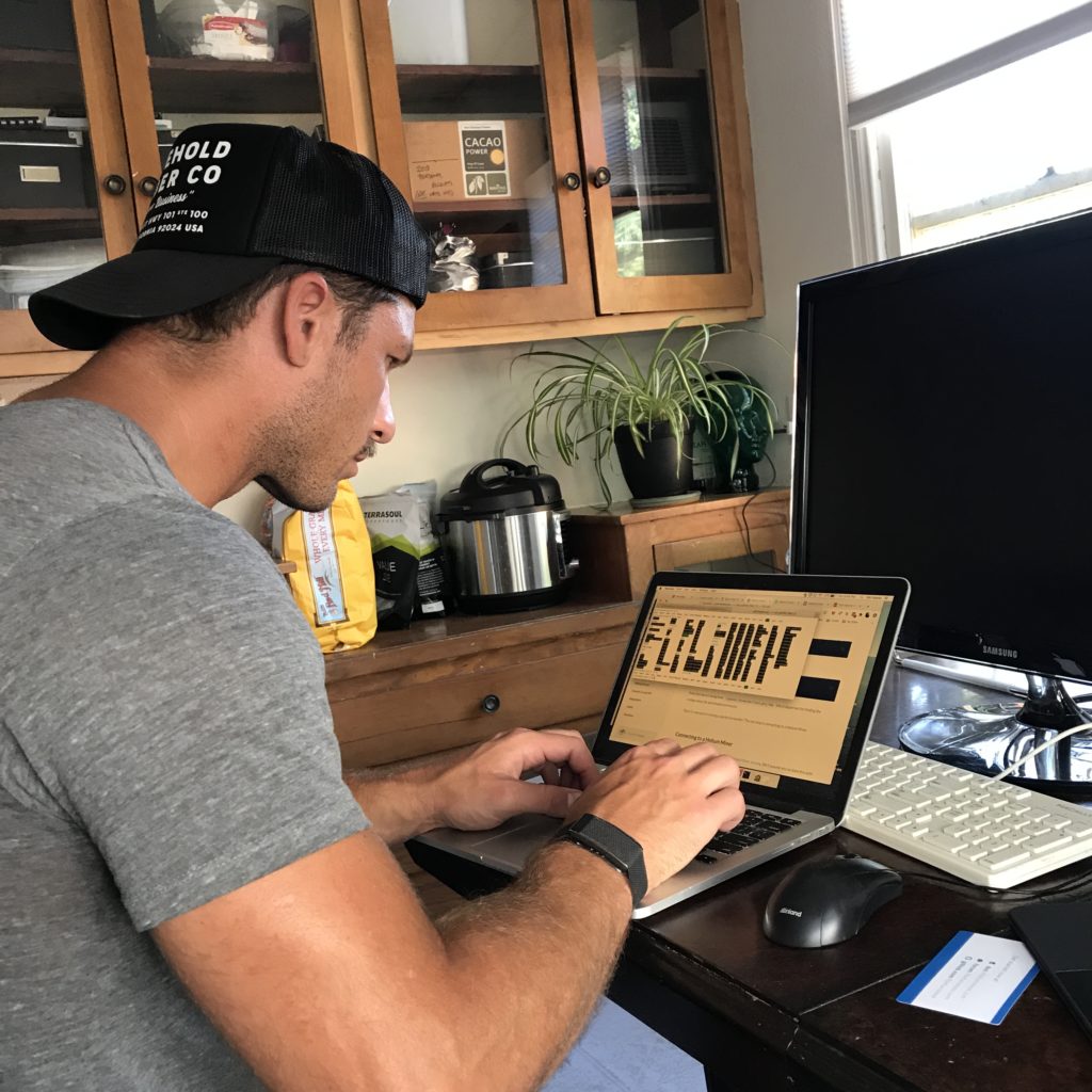 Here's TJ up on my roof, putting the finishing cable management touches on that first miner. We were so pumped to have one up and running!