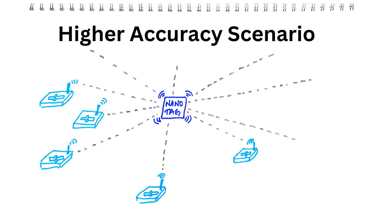 The ideal setup is that the Nanotag is surrounded by Hotspots, which means we can start to get much better results. Still, as I said above, radio trilateration on Helium isn't bang-on accurate.
