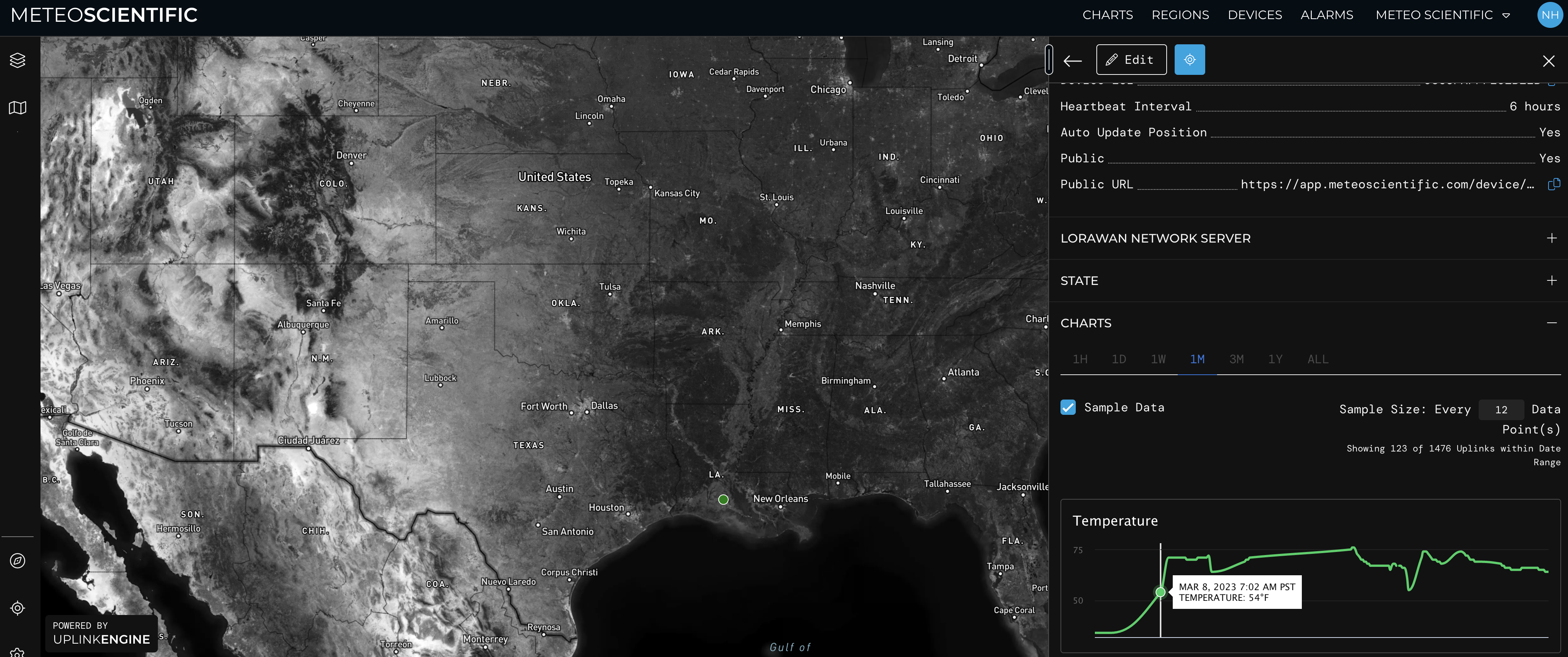 So right off the bat, it makes sense for Paleo Treats or any small business shipping perishable goods to buy a couple Nanotags and just use 'em for in-house testing. Here's a package I sent from San Diego Mempis, then on down to Louisiana. I used Meteo Scientific's Uplink Engine dashboard to keep an eye on it as it traveled. At the beginning it was 34F or so, with the temperature gradually rising to whatever the local environment was over the course of a few days.