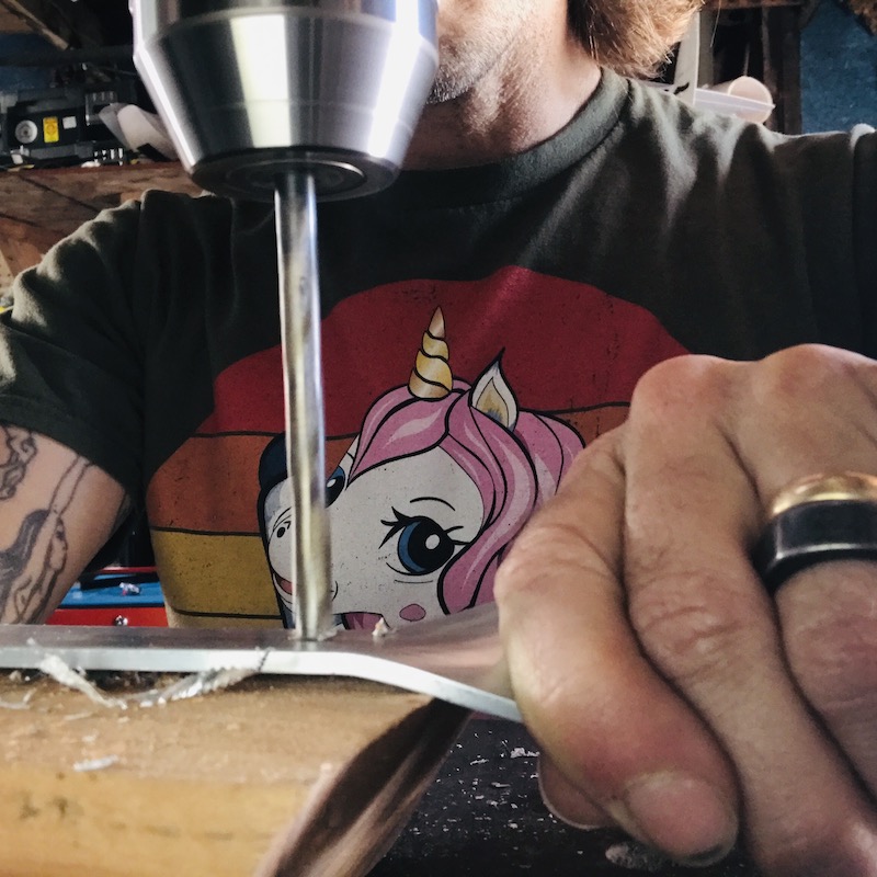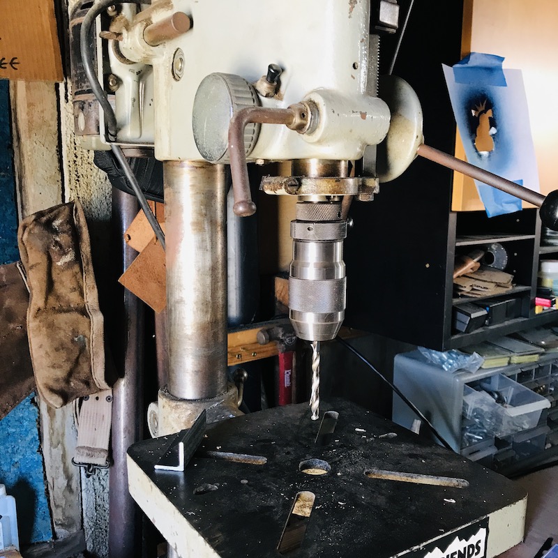 I love that drill press. A random guy gave it to me. I saw it in his garage and commented on how old and rad and heavy duty it was. He said, "That thing's dangerous, I watched my grandfather lose the end of his finger in it. Do you want it?" Yep.