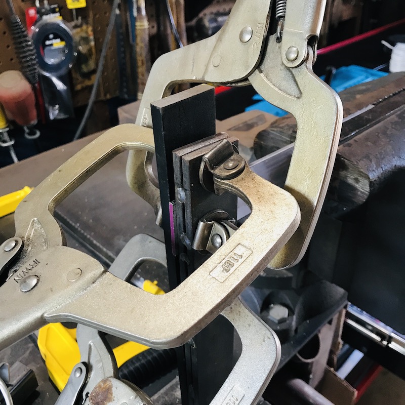 Just because I love building stuff and sharing knowledge, here's the journey. I started by clamping the aluminum bar in my vise, then twisting one end 90 degrees.