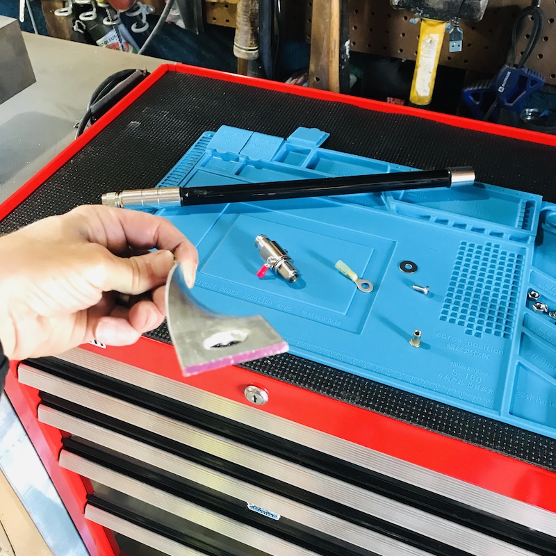 Next, I laid out what I'd need. Antenna, lightning arrestor, grounding wire, easy disconnect terminals, and a rivnut. Aw yeah, rivnuts!