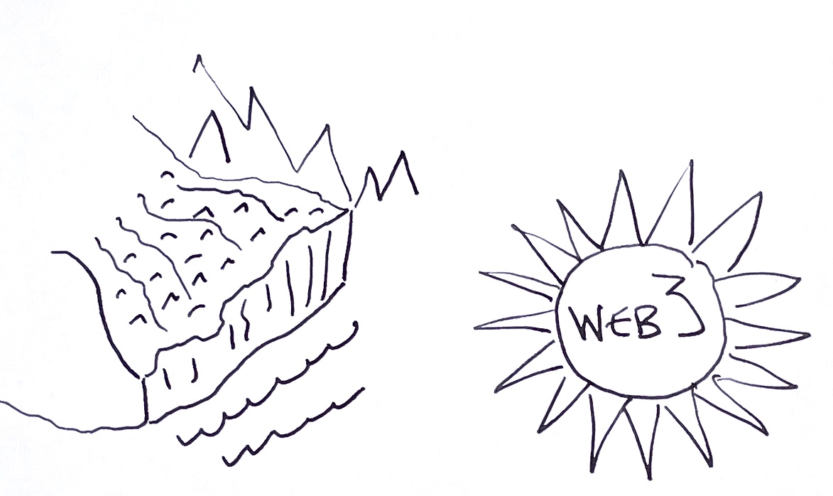 If we want to really stretch the Ice Age analogy, I'd put it this way: Sure, the ice age is coming, but web3 is also coming, and web3 burns with the white-hot intensity of a thousand suns, melting the ice and causing tsunamis of change to race around the globe.