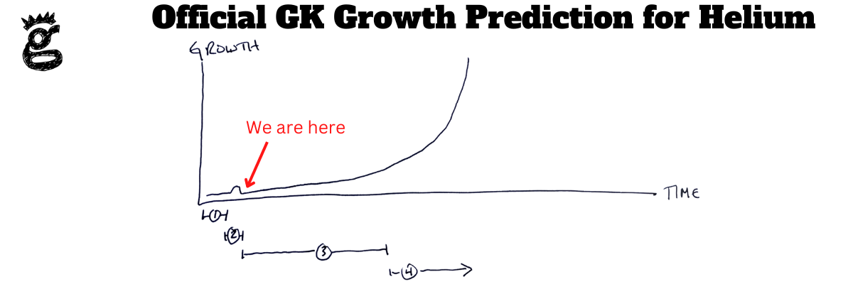 In the graph above (not to scale), at stage 1 we had Helium Inc casting about in the wilderness for years, trying to figure out what it would do. Helium was always about IoT, so that was their North Star. During that time (2013-2019) nobody really knew about them. They they stumbled on the idea of hooking IoT to a blockchain, birthing an industry with exquisite (and probably completely accidental timing. It still took a year to fire; it wasn't until sometime around late 2020 that things started to go parabolic.