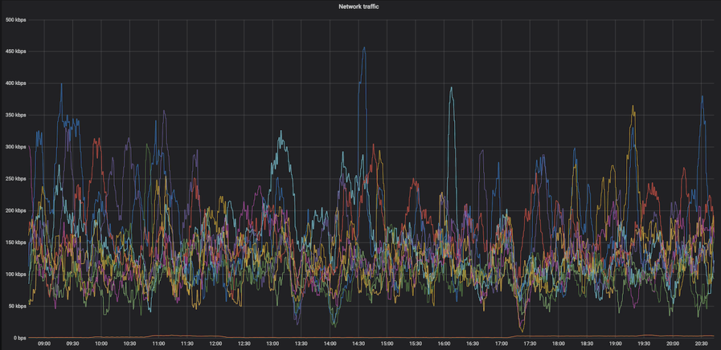Here's a graph of the network data traffic for a group of hotspots on a 10 minute average: