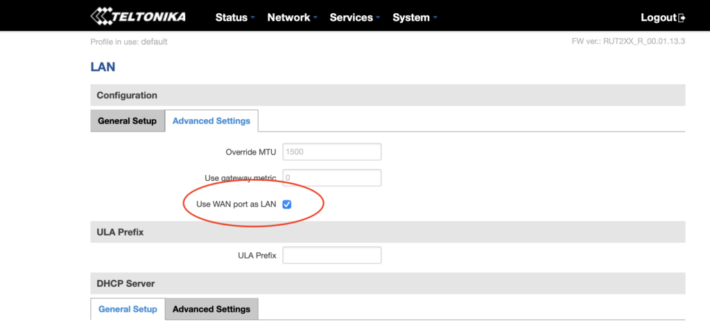 Hi Nik, I am connecting the sensecap to rut via the lan port. I am connecting the laptop to rut via the wan port. I followed the steps to make wan port act as lan. The rut dashboard shows connection and even has up and down packets going thru. However, i cannot ping from it. 100% data loss. and i cannot get the miner up. yesterday the miner was up for a bit but then i still could not ping.