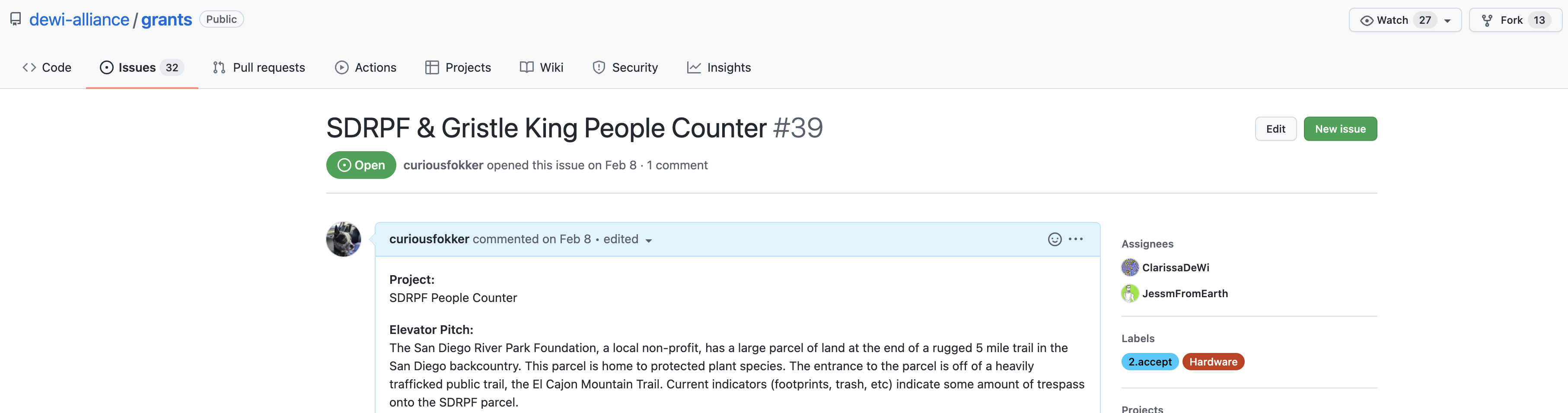 I ran them by a ranger I'd met on the trail, and he was enthusiastic about it. I started talking about a "people counter project" with my Helium homies. I thought maybe I'd just buy one or two devices on my own and deploy 'em just for fun. I talked to a local land owner where I've got a Hotspot deployed, and it turned out they had a trespassing problem, so I had at least one "use case", to count the number of people who trespassing.