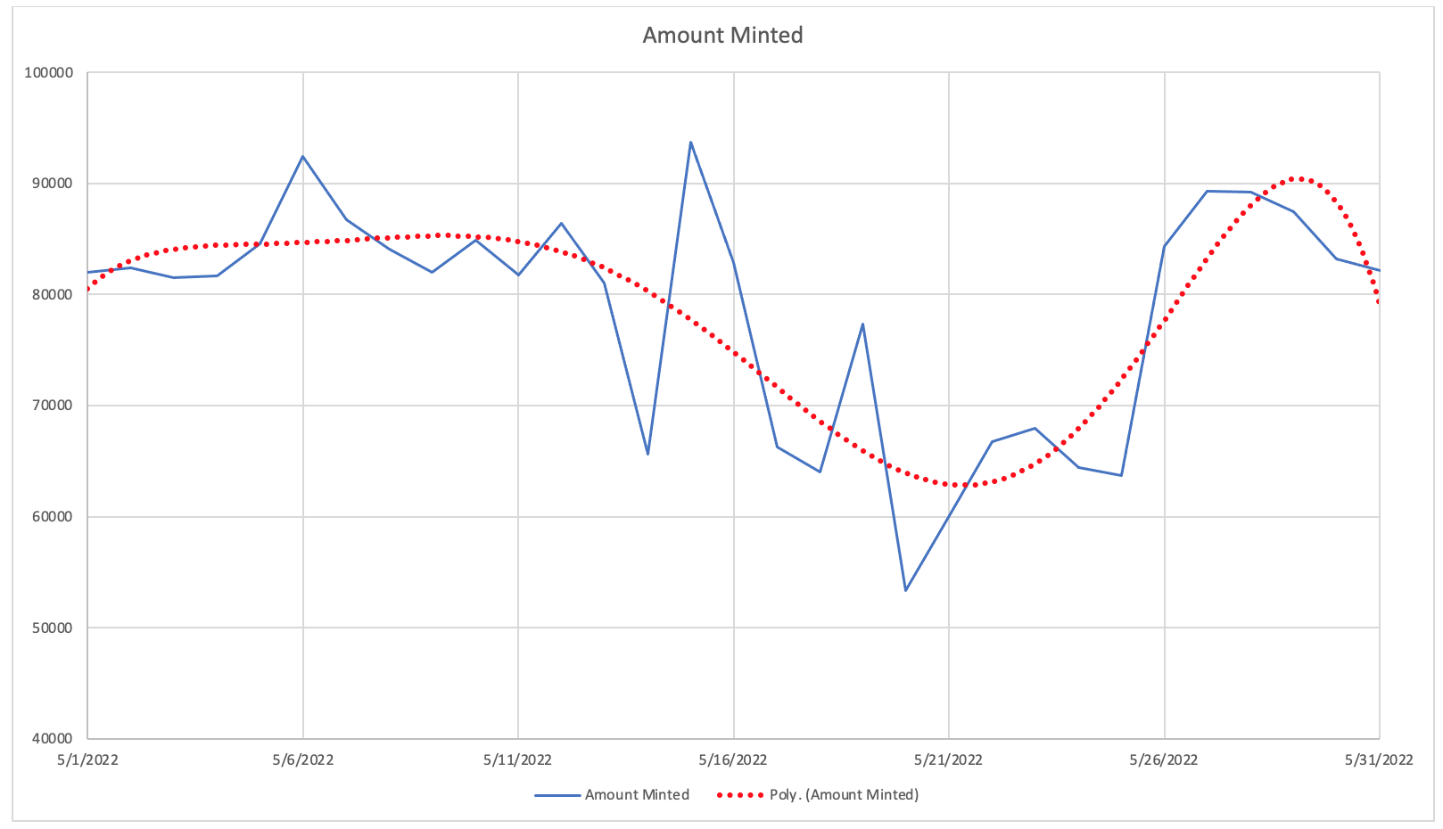 The amount of HNT minted dropped temporarily and was spiky enough to freak out thousands of Hotspots owners. The trend line (red dots) is better to watch than day-to-day (blue line), but most people gnaw their knuckles whilst staring at the blue. In any event, it is now approaching normal.