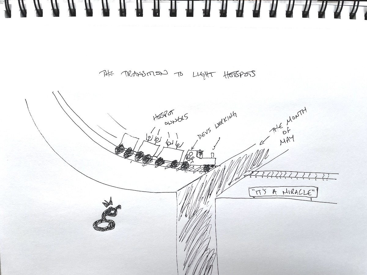 The transitions to Light Hotspots isn't complete, and I wouldn't be caught dead saying "It's in the can" (sorry Joey, couldn't resist), but we're close, and much of the worst is behind us. Onward!