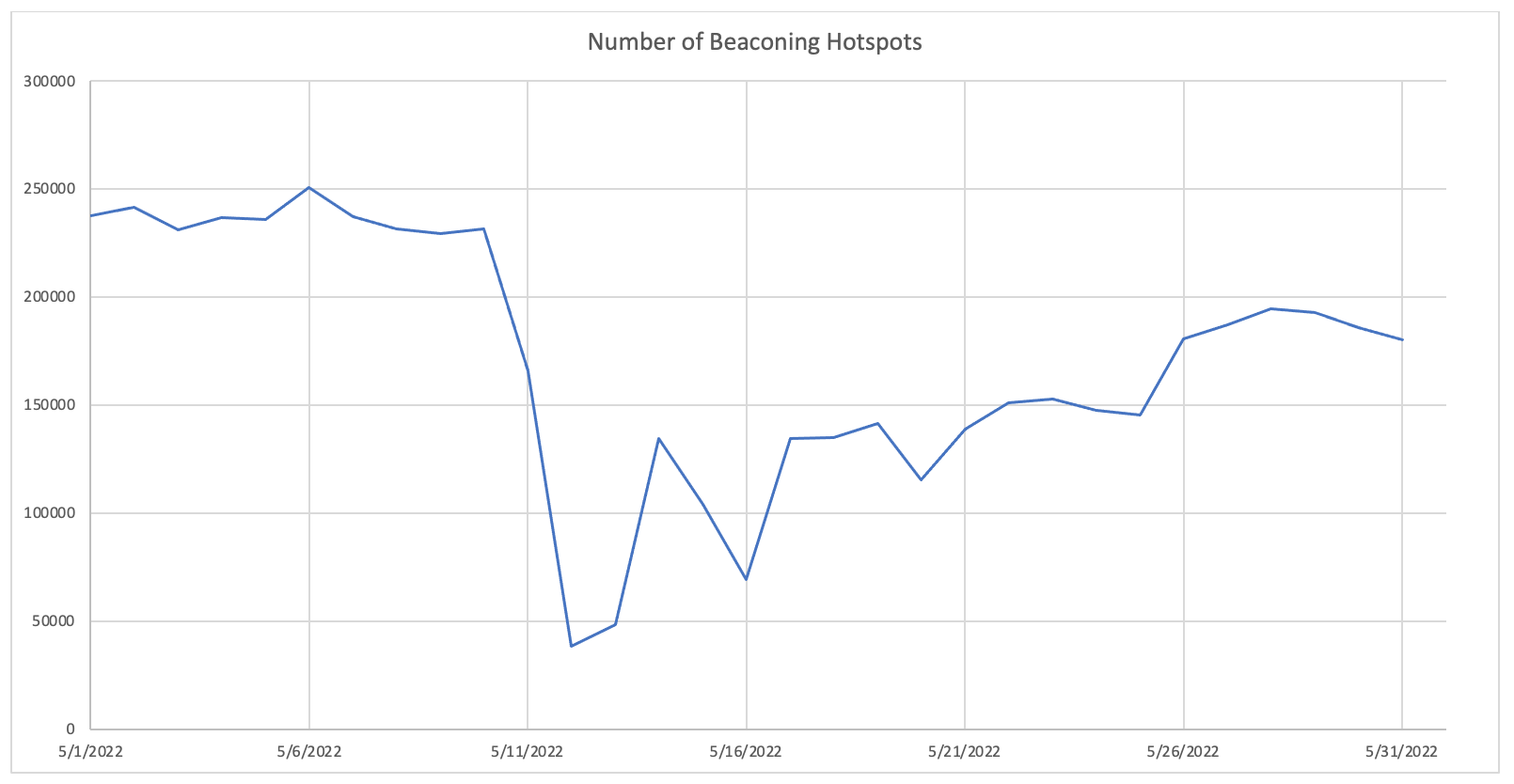 The number of Hotspots beaconing dropped sharply on May 11th and hasn't recovered fully yet.