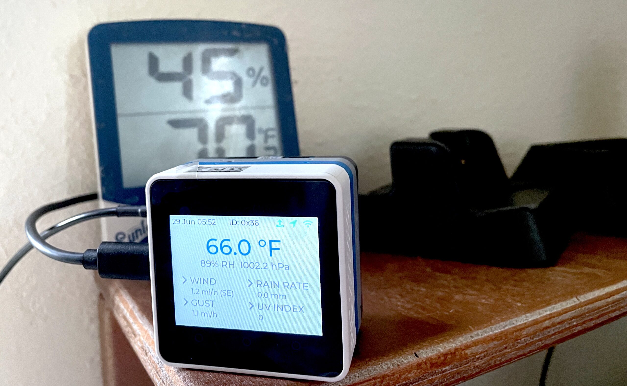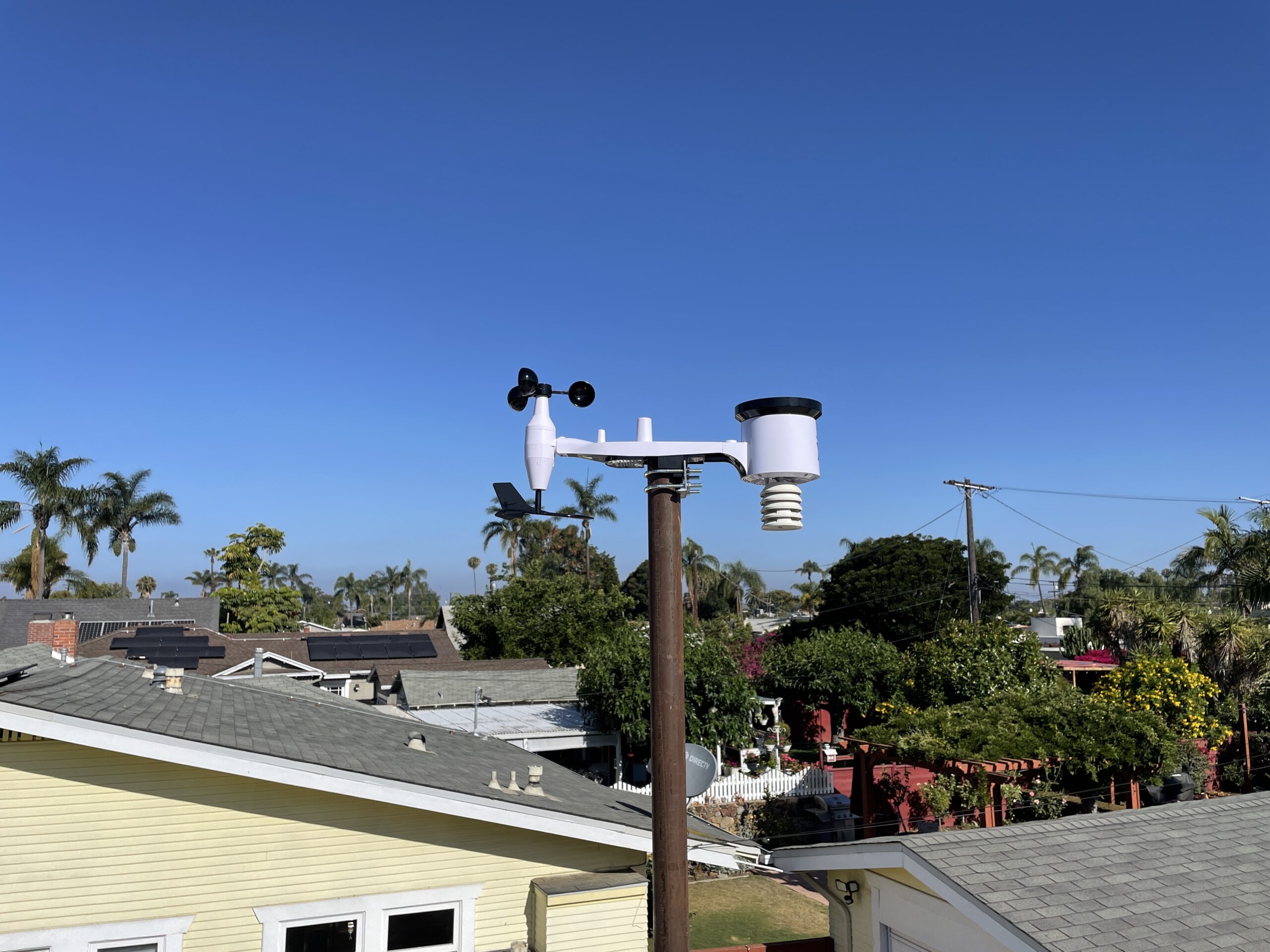 One project where you can add a device to the same pole (or roof) you've already secured is WeatherXM. It's a small weather station that reads wind speed, direction, air temp, humidity, light, a rain gauge, and pressure. The outdoor station communicates over LoRa to a base station in your house that connects to your WiFi.