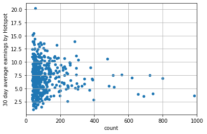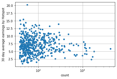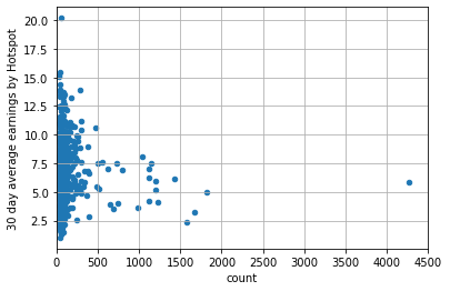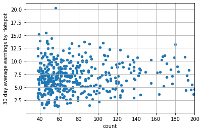 - Most interesting to me was that the cities with the highest average earnings per hotspot have 40-60 deployed, a little lower than what I'd expected would be needed to maximize