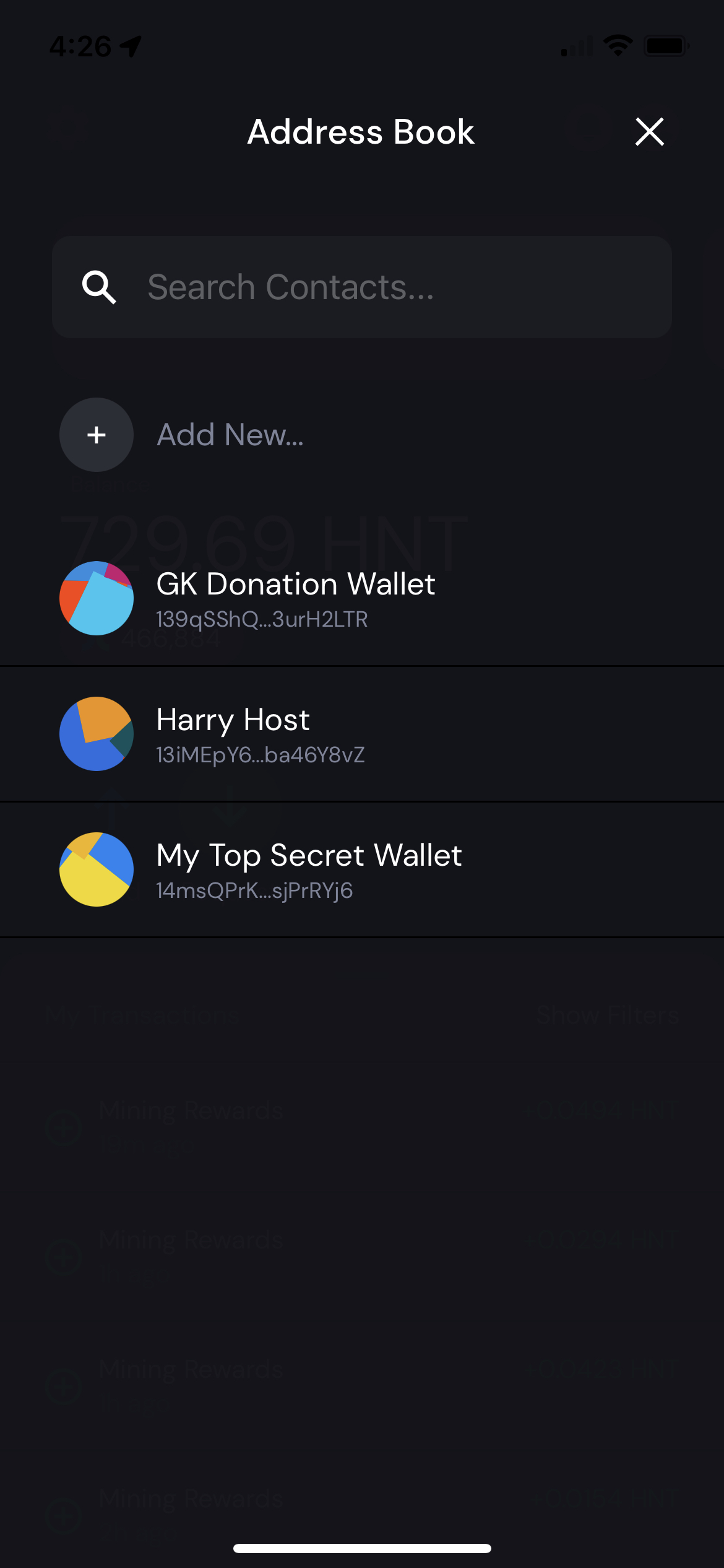 In any given wallet, you can dig into the transactions. You can also add multiple wallets to the app. You might have one for your active Hotspots, one for a Hotspot you want isolated (maybe you have a Host and there's no need for them to see your other accounts), and maybe you have a separate wallet for where you withdraw your HNT monthly, just to keep it out of the active wallet. You can also keep a list of commonly used addresses you send money to. Oh hey Gristleking's Donation Wallet! ;)